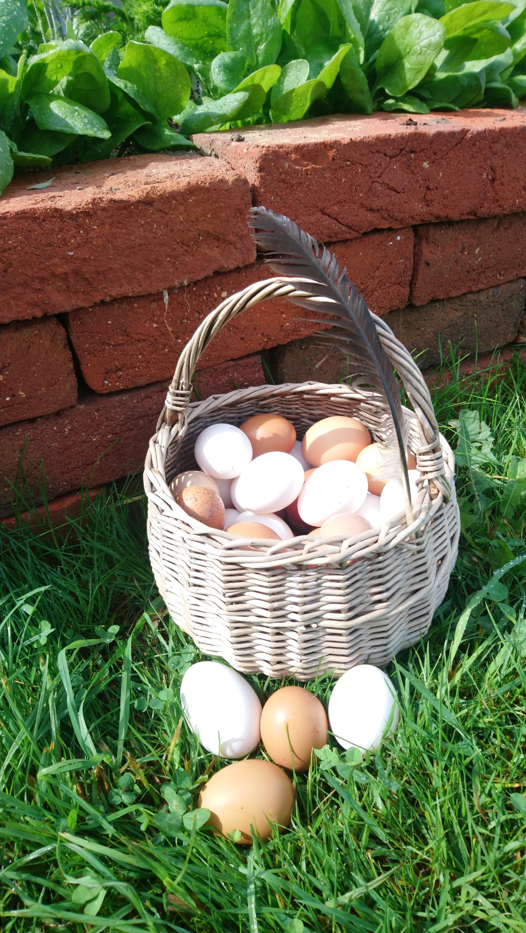 Nabízíme k prodeji vajíčka od našich volně pasoucích se slepic. Tudíž mají stále zelenou pastvu, spoustu brouků k zobání, velké množství pohybu a vyžití. Přikrmujeme je zbytky z naší zeleniny a ovoce, a jinak dostávají standardní směs pro nosnice bez GMO.