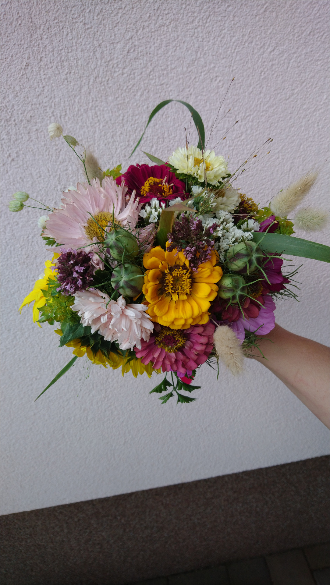 Kytice vážeme pouze z toho, co vyrostlo u nás v záhonech nebo na rozkvetlých loukách a keřích okolo našeho hospodářství. Stylem hospodaření podporujeme na našich pozemcích druhovou rozmanitost a biodiverzitu.